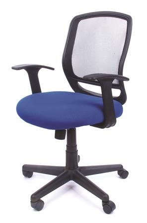 Irodai szék, karfás, kék szövetborítás, feszített hálós háttámla, fekete lábkereszt, MAYAH "Fun"