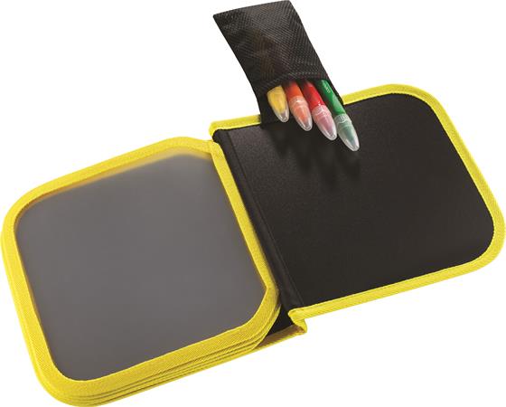 -1 hordozható könyv rajzoláshoz, krétákat tároló zsebbel felszerelve