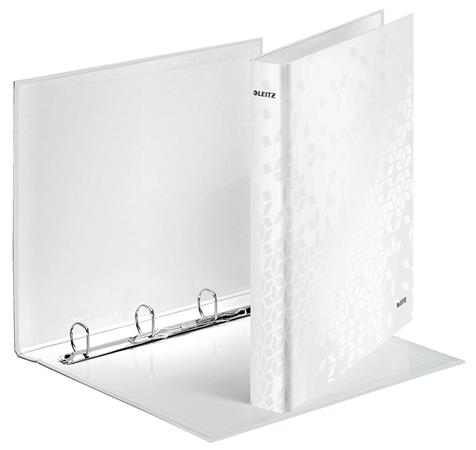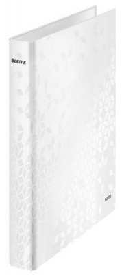 Gyűrűs könyv, 4 gyűrű, D alakú, 40 mm, A4 Maxi, karton, LEITZ "Wow", fehér