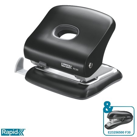Lyukasztó, kétlyukú, 30 lap, RAPID "FC30", fekete