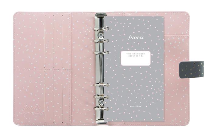 Kalendárium, gyűrűs, betétlapokkal, pocket méret, FILOFAX, "Confetti", fekete