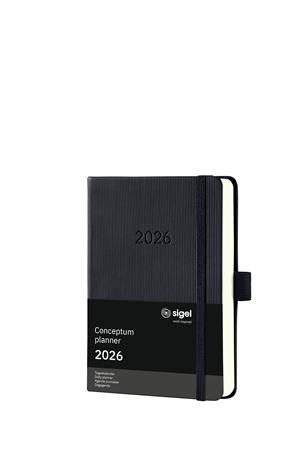Naptár, A6, napi, 2026, kemény borító, SIGEL "Conceptum", fekete