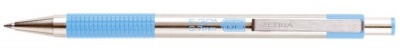 KezdőlapIrodaszerekÍrószerekGolyóstollakGolyóstoll, 0,24 mm, nyomógombos, rozsdamentes acél, pasztellkék tolltest, ZEBRA "F-301", kék