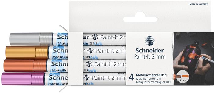 Metálfényű marker készlet, 2 mm, SCHNEIDER "Paint-It 011", 4 különböző szín