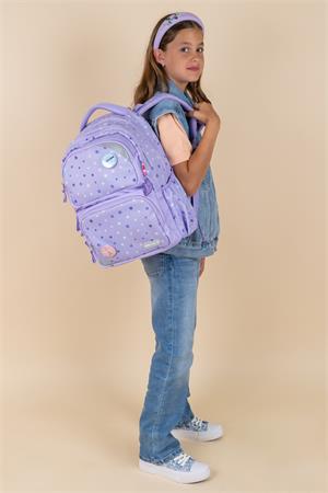 Iskolatáska, cipzáras, BELMIL "Maxi Pack Purple Dots", lila pöttyös