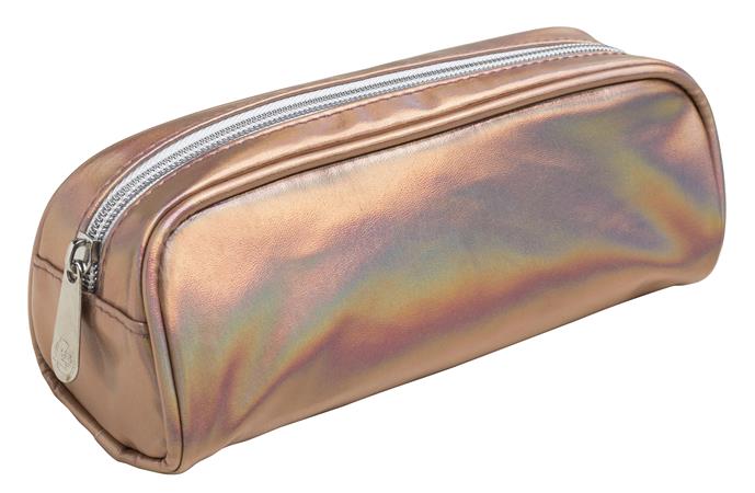 Fémes holografikus hatású poliuretánból készült tolltartó.