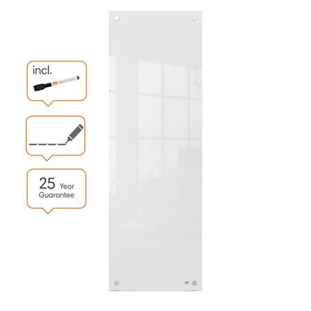 Üzenőtábla, üveg, fali, keskeny, 30x90 cm, NOBO "Home", fehér