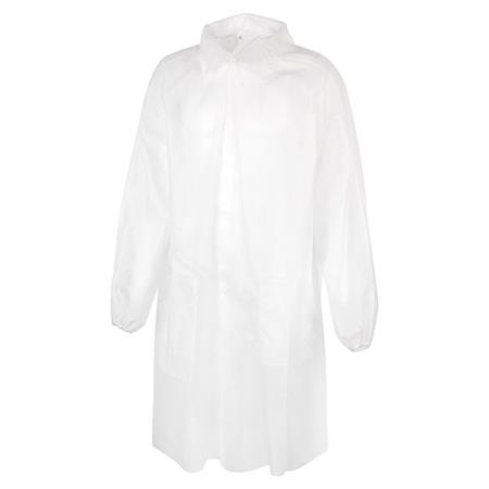 Látogató köpeny, egyszer használatos, polipropilén, tépőzáras, XL méret, fehér